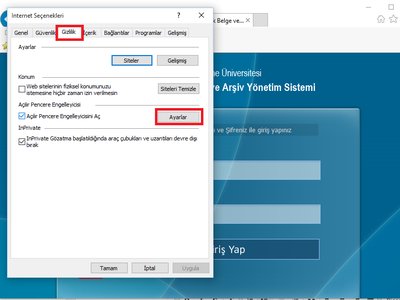 Elektronik Belge Yönetim Sistemi web tarayıcınızda açık durumdayken güvenilen sitelere ekleme işlemi yapılmalıdır.