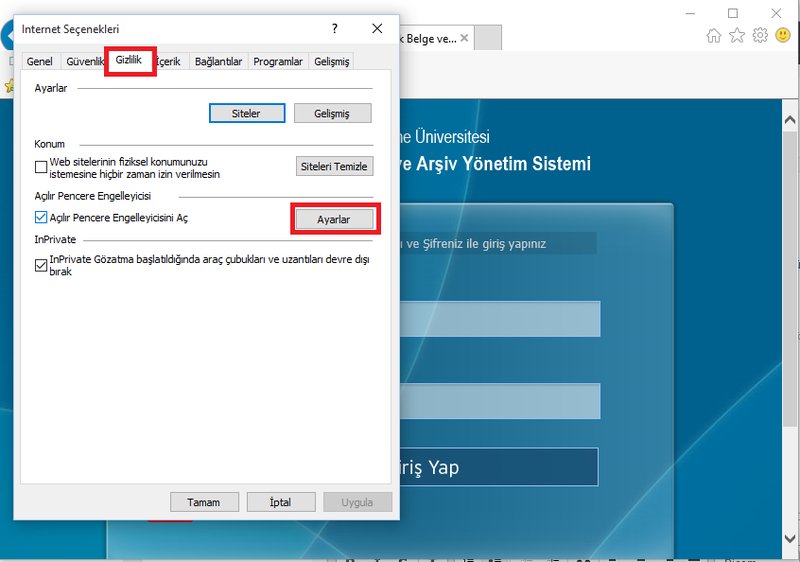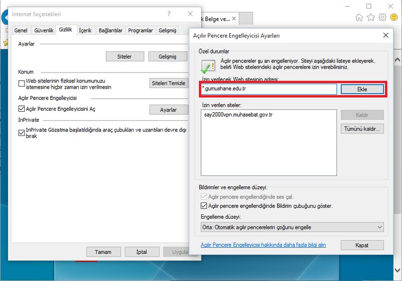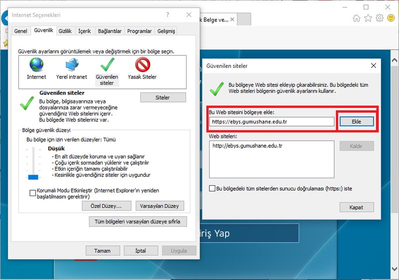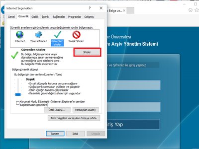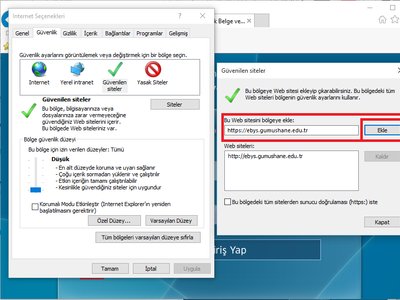 EBYS’nin Güvenilen Sitelere Eklenmesi