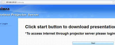 2. İnternet tarayıcınızı açarak projeksiyondan ekrana yansıyan “192.168.100.10” wlan ip adresini giriniz ve start tuşuna basarak programı indiriniz. Eğer tarayıcı adres çubuğuna ip adresini girip programı indirmek istemiyorsanız en aşağıda bulunan linkten programı indirebilirsiniz.